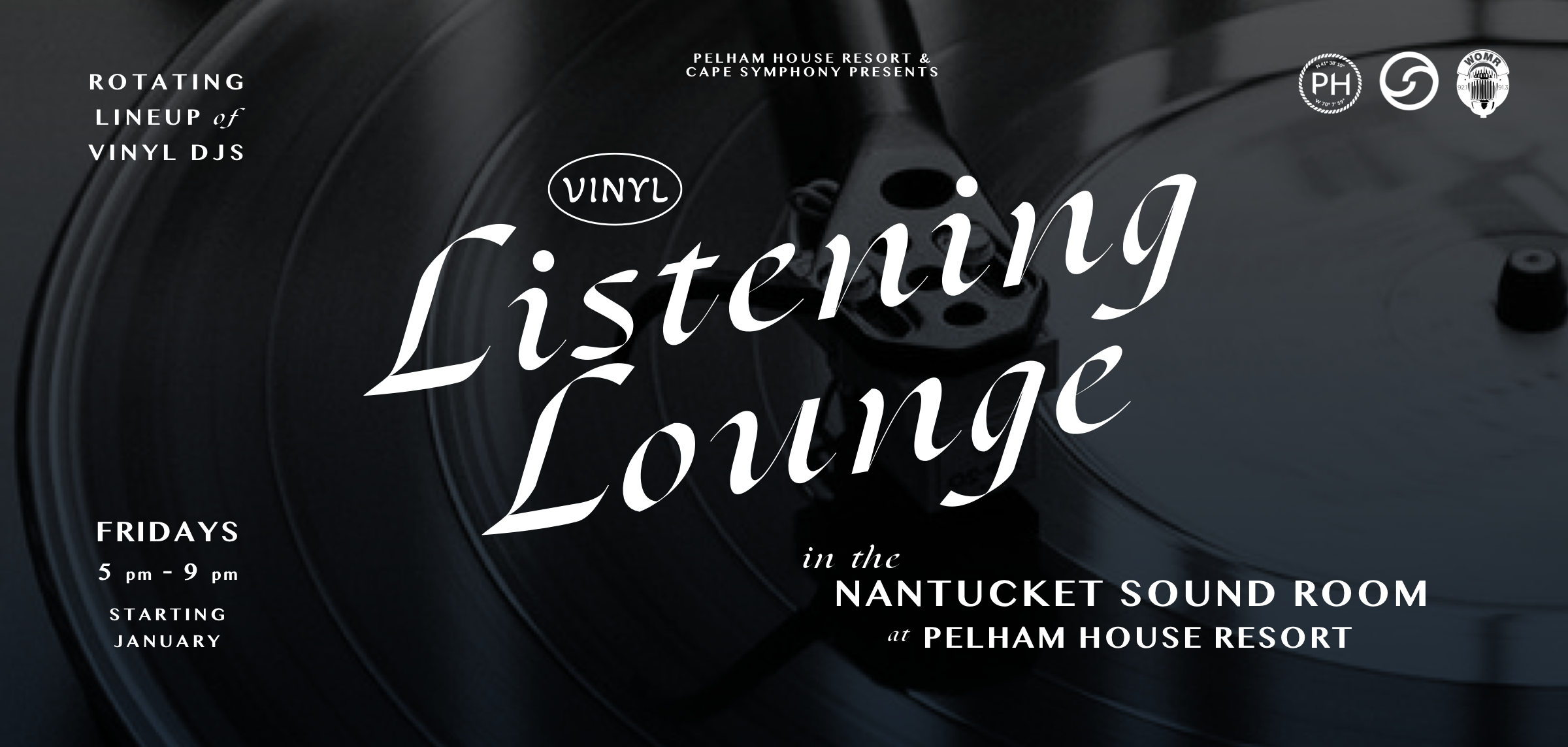Cape Symphony Presents, Pelham House Resort, and WOMR are proud to announce the launch of Cape Cod’s first listening bar. Pelham Listening Lounge, curated by Cape Symphony Presents at Pelham House Resort in Dennis Port, will be open every Friday evening from January 10 – February 28, 2025.