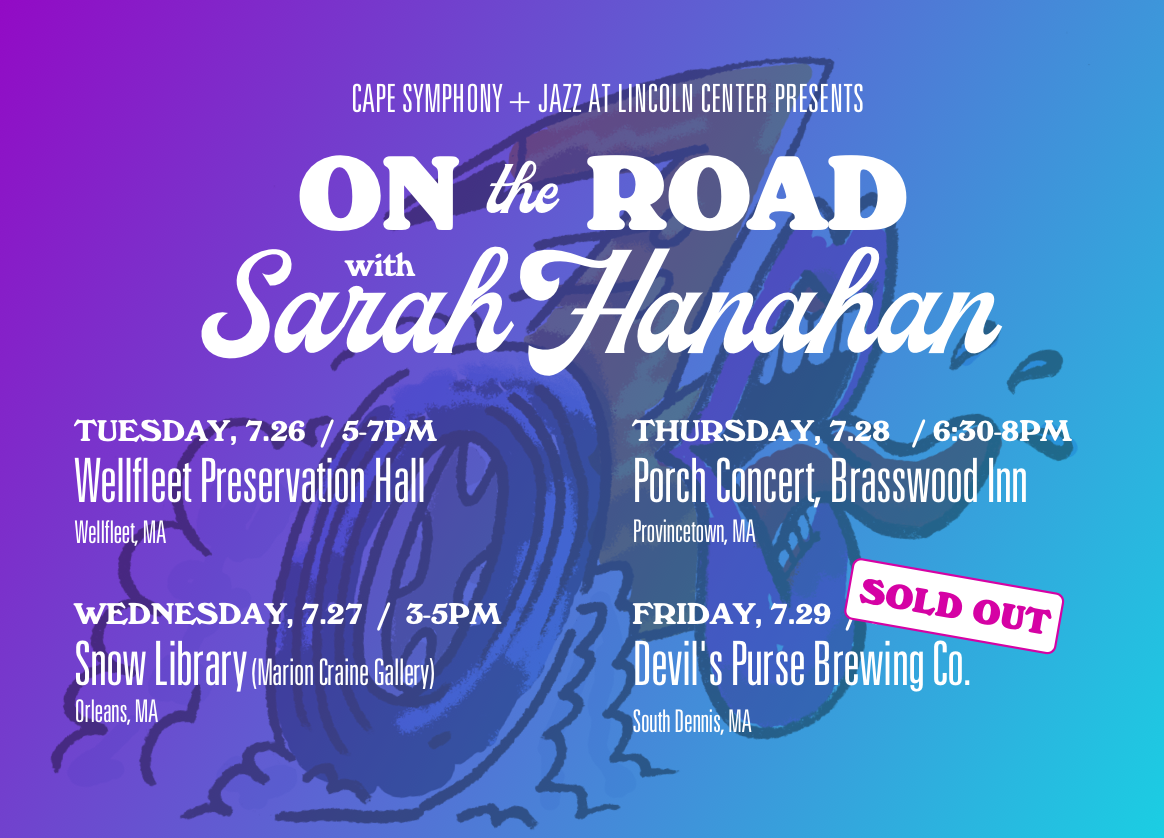 This summer, the Cape Symphony and Jazz at Lincoln Center present On the Road with Sarah Hanahan. These four concerts, taking place around the Cape, are part of the Jazz at Lincoln Center’s On the Road Initiative.
