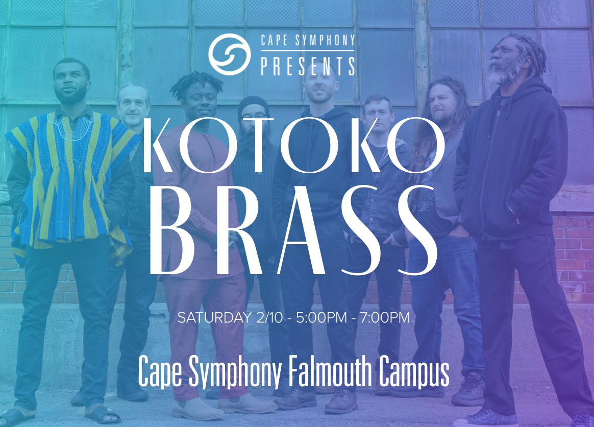 Looking to put some pure fun in your Cape Cod winter? Have we got a band for you! Kotoko Brass combines beautifully complex Ghanaian drumming, robust Caribbean bass and keyboards, and joyous New Orleans horns to create a unique and jubilant sound The Boston Globe describes as “propulsive, infectious party music.”