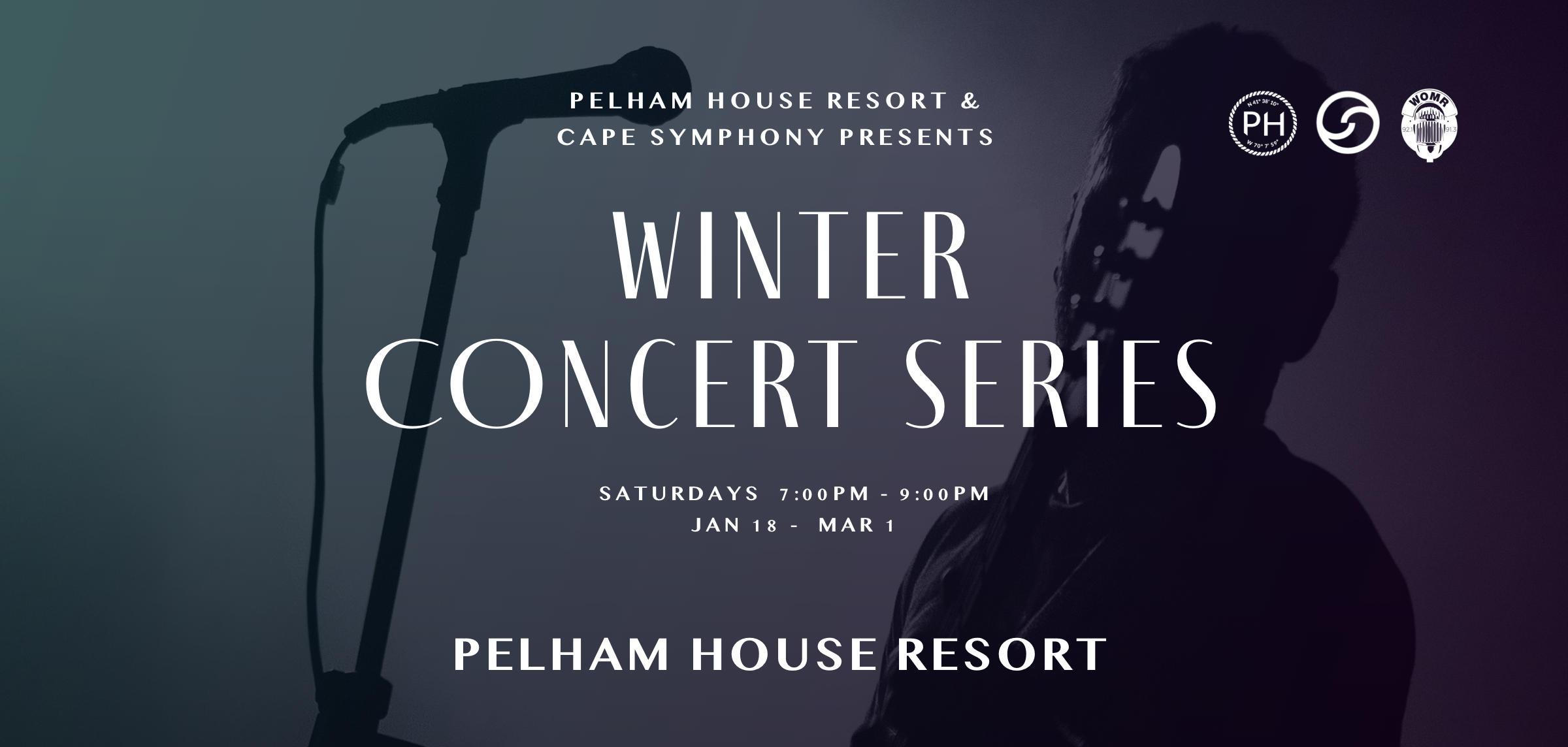 Cape Symphony Presents is thrilled to announce its collaboration with Pelham House Resort and WOMR to bring a lineup of world-class artists to perform at Pelham House Resort in Dennis Port on Saturday evenings this winter.