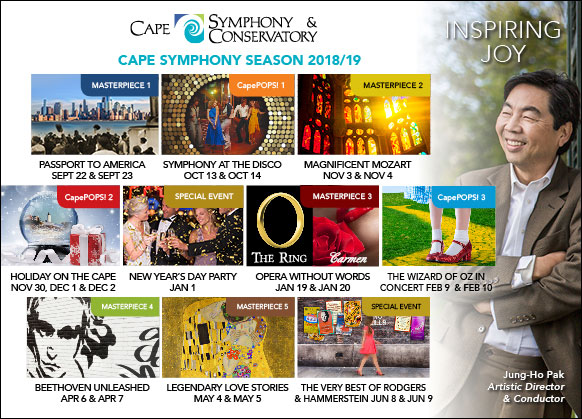 Beautiful music. Inspiring stories. Joyous celebrations. The Cape Symphony is “Inspiring Joy” in the 2018-19 season.